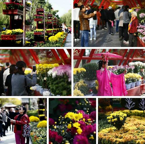 特別是“丹鳳朝陽”、“清娃迎賓”、“扇舞秋風(fēng)”、“財(cái)雄天下聚寶盆”、“菊香秋意濃”、“茶香四溢迎賓客”、“秋天里的童話”等經(jīng)典造型更是搶足游人眼球。穿行其間,讓人真正感受到清明上河園的繁花似錦和菊花文化節(jié)的撩人盛宴!