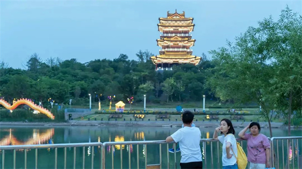 夜晚的園博園,更是絢爛多彩、熱鬧有趣。