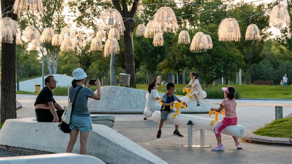 走進(jìn)感官花園,在吶喊噴泉前比比聲音的高度,在森林迷宮來一場(chǎng)親子捉迷藏,在回音壁聆聽“天人感應(yīng)”的奇趣聲波;或是到兒童游樂場(chǎng)自由撒野,在歡聲笑語中與孩子共度愉快的一天。