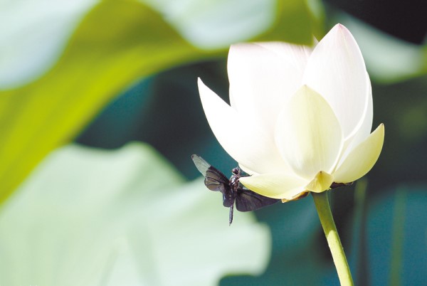 一只蜻蜓落在荷花上(資料圖片)