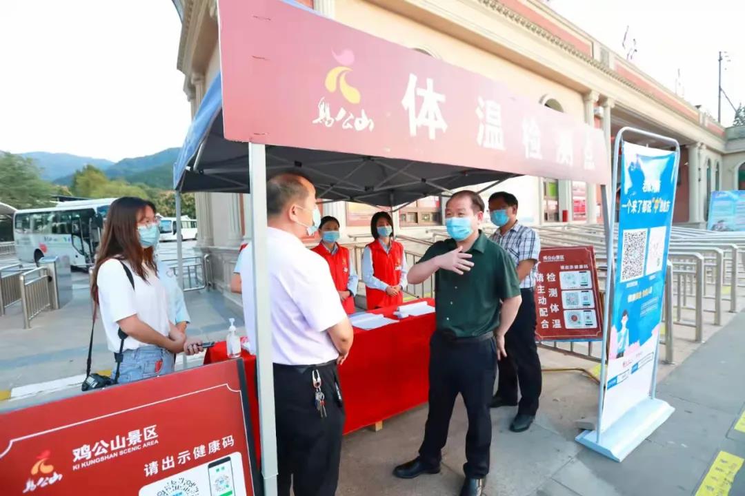 安全生產(chǎn)無小事,疫情防控很重要。9.30日下午,劉慶東一行來到雞公山景區(qū)視察,與相關(guān)負(fù)責(zé)人、值班值守人員密切交流,詳細(xì)了解轄區(qū)國慶假期旅游交通安全、消防安全、5A級景區(qū)創(chuàng)建進(jìn)度、旅游服務(wù)、疫情防控相關(guān)措施落實情況等。要求各部門各司其職,周密配合,加強值守,堅決杜絕旅游安全事故發(fā)生,讓每位游客都能開開心心來景區(qū),平平安安回家去。