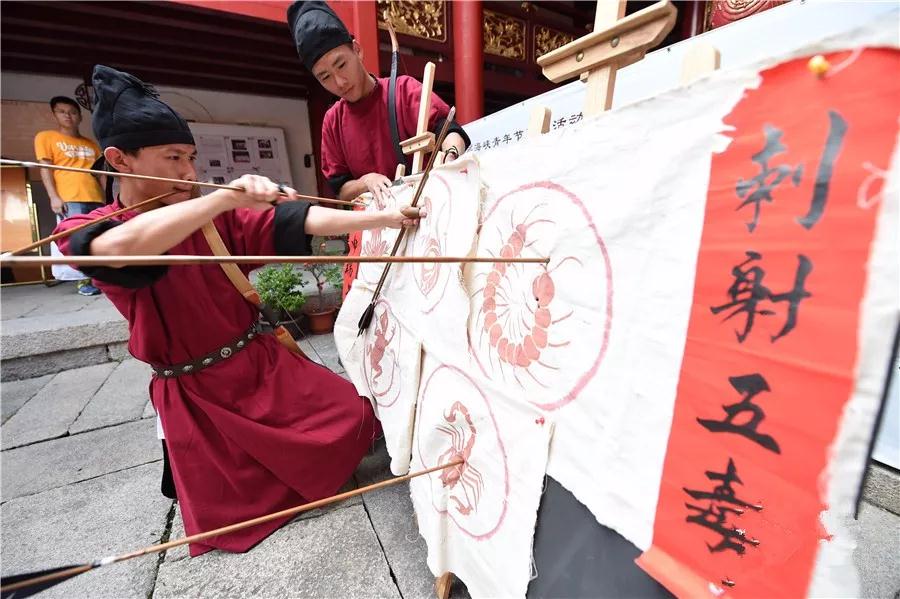 祭祀活動(dòng)結(jié)束后,沐蘭湯、點(diǎn)雄黃、 射五毒等端午傳統(tǒng)禮儀讓你感受濃濃的端午文化!而且這些習(xí)俗都蘊(yùn)含著古人驅(qū)毒避瘟、防疫祛病的養(yǎng)生智慧。