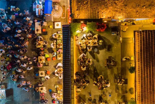 夜幕降臨,位于河南洛陽老城區(qū)的貼廓巷,民宿、餐飲等商鋪招牌霓虹閃爍,煙火升騰,老街新貌,吸引大量游客前來游玩打卡。