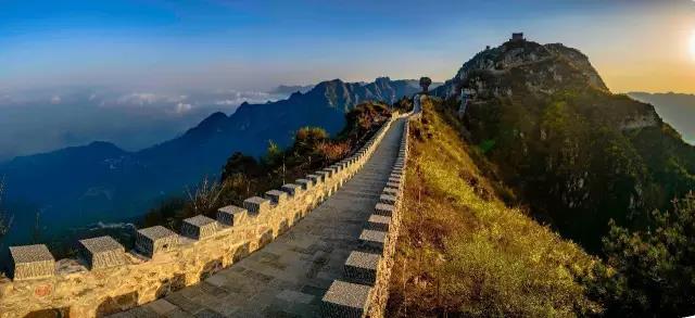 綿延在山脊的,就是龍脈長城了。龍脈長城,為趙、魏龍脈長城之遺址,像一條盤旋在太行山脊上的巨龍,橫跨豫、晉兩省,由東北方向的林縣昂首奔來,挾帶著燕趙之地慷慨激烈之氣勢,經(jīng)過趙國宰相藺相如的藺家寨,蟠結(jié)屈曲于侯兆川的轎頂山、鐵打寨;又挾帶著太行向陽山坡華山的淋漓元氣,昂首奔赴于東南方的趕羊塽、北窯、老祖洞,最后,至天柱關(guān)而止,那高聳入云的天柱雙峰,就是龍脈長城巨大的雙角,長達(dá)14公里。