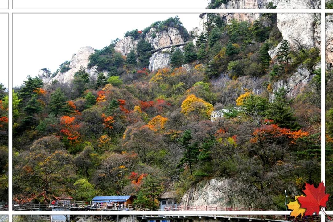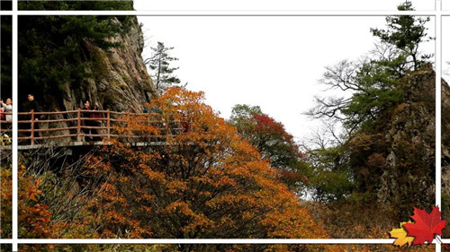 十里畫(huà)屏觀賞區(qū)。行走在棧道上,目光所及便是看得見(jiàn)的滿(mǎn)山紅葉,這時(shí)的你一定是很自然的拿起手機(jī)→邊走邊拍,記得歇歇腳。
