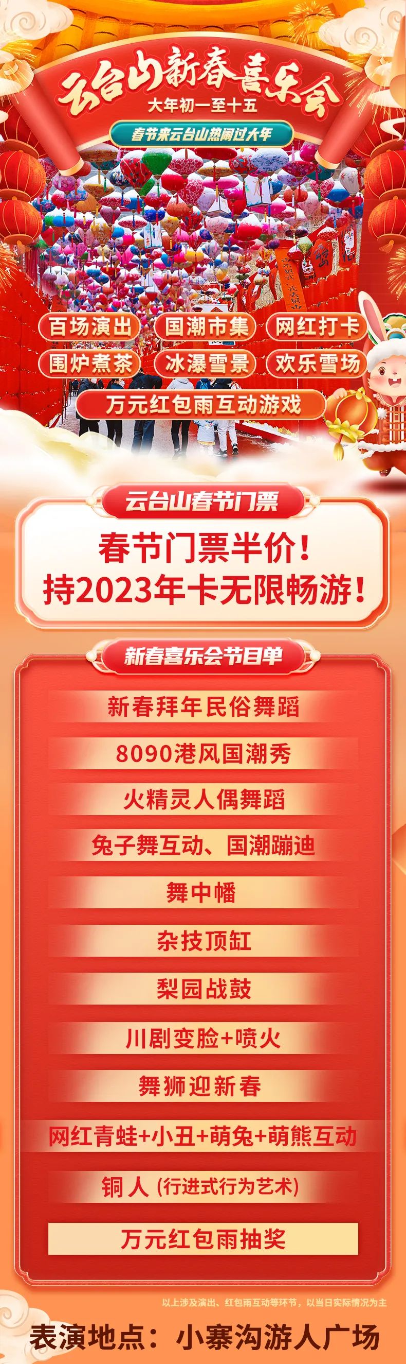 紅紅火火的燈籠,琳瑯滿目的市集,美輪美奐的冰瀑,熱鬧歡樂的雪場,春節(jié)就來云臺山過大年。