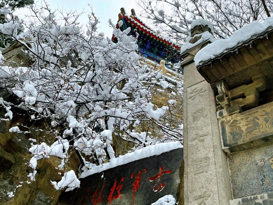 當(dāng)云夢山遇上雪,銀裝素裹,雪花如梨花般唯美,灑落在紅墻碧瓦之上,停留在時(shí)間長河之中。