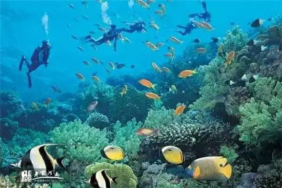 穿上潛水服潛入海底,一個(gè)靜謐的、醉藍(lán)的海底世界呈現(xiàn)在眼前,海水清澈湛藍(lán),珊瑚、魚兒、海膽、海星、海參……構(gòu)成一個(gè)五彩斑斕的海洋王國。