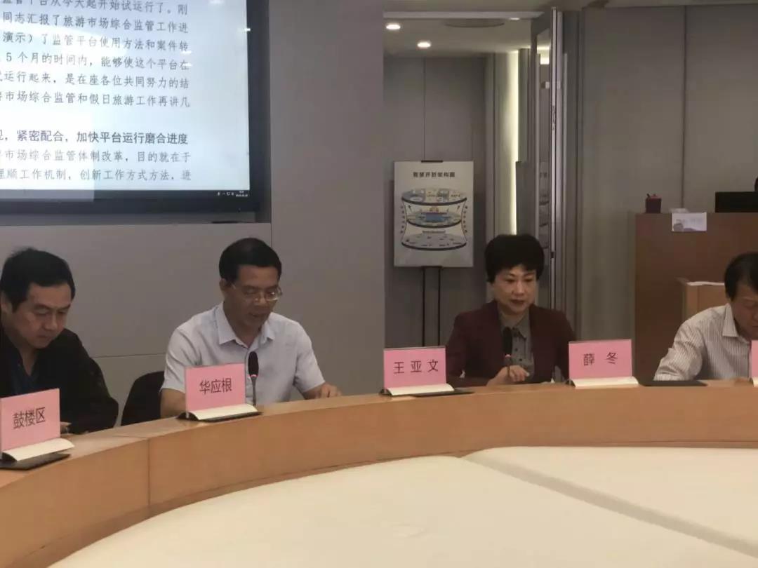 會(huì)上,領(lǐng)導(dǎo)們聽取了開封市旅游市場監(jiān)管綜合體制改革工作匯報(bào)和旅游監(jiān)管平臺(tái)功能簡介和使用演示。