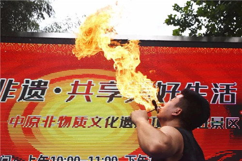 只見(jiàn)演員氣沉丹田微微運(yùn)氣,就吐出一條火龍,真真是驚險(xiǎn)又刺激!