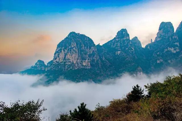 深秋時節(jié),秋冬交替之際,正是轎頂山最艷麗的時候,也是官制長廊兩旁槐葉最具有色彩的時刻。 每當云開霧散去,懸崖的魅力展現(xiàn)在眼前,轎頂山秋色一絕原來美麗到了極致。