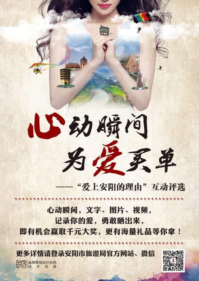 “愛上安陽的理由”互動評選,參賽者可圍繞安陽的“吃、住、行、游、購、娛”或“商、養(yǎng)、學、閑、情、奇”等要素,將觸動心弦的一瞬間,化作文字、圖片、視頻發(fā)送給主辦方參與活動。本活動分為“文字、圖片、視頻”三大類榜單,設立優(yōu)秀獎和入圍獎。其中,優(yōu)秀獎每類10名,共計30名,獎金各1000元;入圍獎共計300名,頒發(fā)獎品一份。