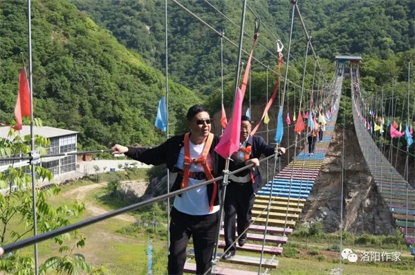 隨后,作家們在申泰控股集團主席助理謝舞波、商旅集團總經(jīng)理梅文星、副總經(jīng)理盧允偉、神靈寨景區(qū)董事長劉恒的帶領(lǐng)下,共同體驗了步步驚心、洛神掌、洛神天梯、天空之鏡等網(wǎng)紅項目,游覽了竹林、蘿卜瀑、栓牛石、料窯等主要景點,見證了洛寧非物質(zhì)文化遺產(chǎn)洛寧酸牛肉、粉蒸肉特色。大家紛紛被神靈寨的洛神文化所折服、被秀美的山水所震撼、被特色美食所吸引,表示要用手中的筆抒寫神靈寨旅游文化的壯景,讓被更多的人所了解、所欣賞洛陽的大好河山。