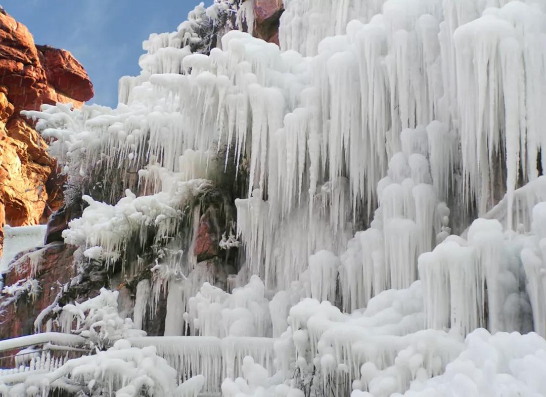 天寒地凍時(shí)節(jié),沿著紫龍峽往上游尋覓,走過(guò)幾段人工棧道就能看到唯獨(dú)這里冰掛獨(dú)樹(shù)一幟,神性地、詩(shī)化地展示著風(fēng)姿。雖然沒(méi)有了振聾發(fā)聵的咆哮聲,可在萬(wàn)籟俱寂下更彰顯了雄偉與壯觀!
