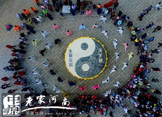 該太極豆腐直徑約為5米,重達4200余斤,由2000斤大豆谷物雜糧,添加純天然老君山泉水精制而成。該豆腐為圓形,呈太極之狀,上面寫著天下第一太極豆腐字樣。制作豆腐所用谷物均由香客無償捐獻。據(jù)了解,形體如此之大,重量如此之巨的太極豆腐在國內(nèi)實屬罕見!