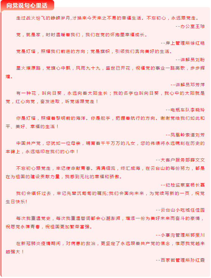 不忘初心,砥礪前行向黨說句心里話!讓我們一起來聆聽云臺山人的心聲——
