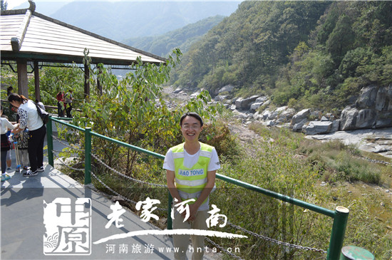 【笑的最開(kāi)心的大學(xué)生】圖片中是來(lái)自新鄉(xiāng)科技職業(yè)學(xué)院的一名大學(xué)生,他和100多名同學(xué)在國(guó)慶假期放棄休假,幫助八里溝園區(qū)旅游接待,問(wèn)他來(lái)八里溝幫忙的感受,這位同學(xué)笑著說(shuō)“這里空氣好啊,山青水秀,做了有意義的工作,還能欣賞風(fēng)景.......”