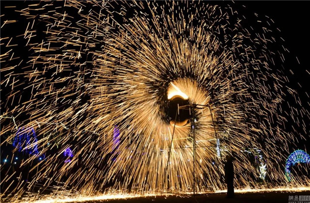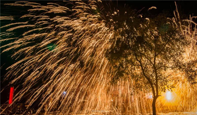 一個(gè)轉(zhuǎn)身,揮灑、拋空,裹挾著千百年的傳承,叫囂著,我就是我,顏色不一樣的焰火。這就是千年絕技——打鐵花!