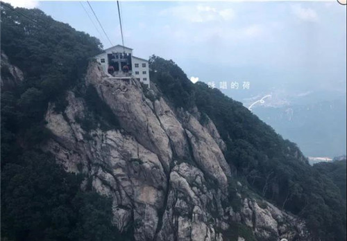 坐在纜車?yán),回頭看,索道站建立在懸崖峭壁之巔!