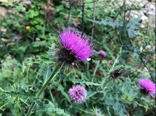 路旁些許的土地上,朵朵大薊小薊綻放著玫紅色的花朵,這可是一味常用的中藥材。