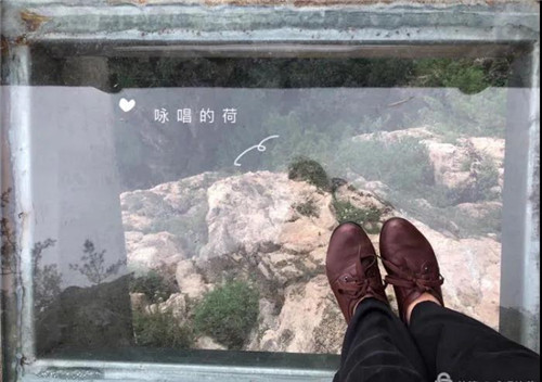 玻璃觀景天臺(tái)是用幾十塊一米見(jiàn)方的玻璃拼接而成,并伸出懸崖外。透過(guò)玻璃,山崖下的溝壑樹(shù)木清晰可見(jiàn),很多人不敢站在上面,即便勉強(qiáng)站在上面了,也不敢向前邁進(jìn)一步。