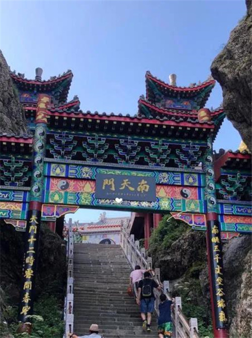 南天門是人們上山的唯一一條道路,在山下觀望老君廟如在天上。只有努力攀登、埋頭攀登,才能通過(guò)這段長(zhǎng)長(zhǎng)的、陡峭的臺(tái)階來(lái)到巍峨的道觀群。