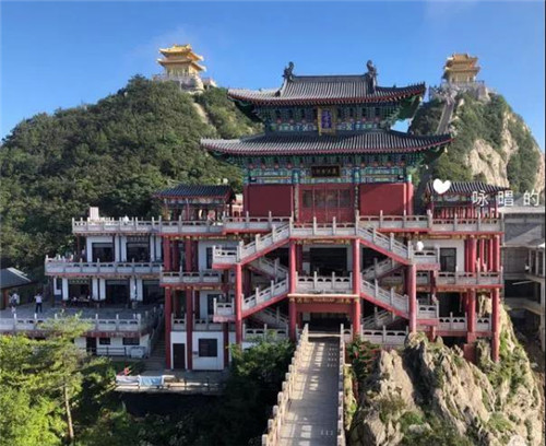 原建筑始于北魏,經(jīng)歷代重修,唐代尉遲敬德曾監(jiān)工重修一次,明朝最為鼎盛,鐵椽鐵瓦、大鐵鐘、銅牛,一片金碧輝煌,五十年代初期被毀壞,民間素有“南有武當(dāng)金頂,北有老君鐵頂”之說(shuō)。