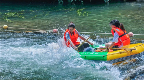 抖音達人們在這里泛舟高峽平湖、漫步峽谷濕地、體驗清爽刺激的活泉漂流,開啟了一場感受青天河水世界的“深度游”!