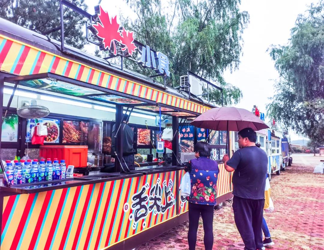 在靳家?guī)X游覽區(qū),十余輛網(wǎng)紅餐車整齊停放,缽缽雞、關(guān)東煮、熱干面、三鮮豆皮……各色超人氣網(wǎng)紅美食云集!