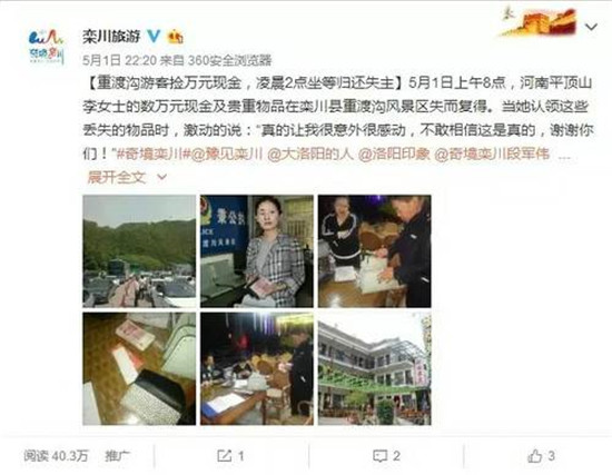 好心游客深夜協(xié)助景區(qū)聯(lián)系失主