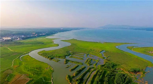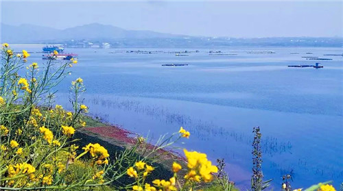 春天是萬物復(fù)蘇的時(shí)節(jié),在春風(fēng)的吹拂下,陸渾湖畔水天一色間夾雜點(diǎn)點(diǎn)新綠,生機(jī)盎然,這個(gè)時(shí)候的仿佛少女初黛,內(nèi)斂卻不失色彩。