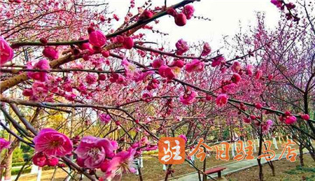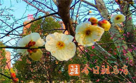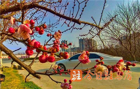 在市驛城大道沿路的公園、開源湖、練江河畔,一株株梅樹上的紅白梅各領(lǐng)風騷,紅的是鐵骨紅,白的是殘雪。