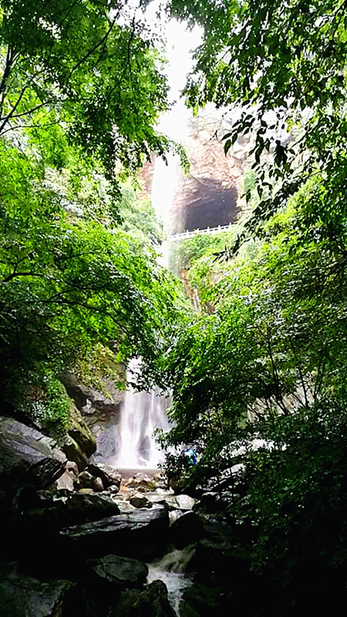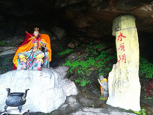 水簾洞是桐柏山淮源風(fēng)景名勝區(qū)的主要景點(diǎn)之一,居挺翠峰48米高的絕壁上。洞寬10米,深5米,中有猴王石像,通天河水飛流直下,掩遮洞口,雨則龍吟虎嘯,晴則游絲斷珠;洞內(nèi)一泉捐滴,匯于一石缽內(nèi),其水甘甜凌冽,四季不涸,周有石桌石凳可供小憩。透過(guò)如雪飛簾,盡可遠(yuǎn)眺太陽(yáng)城等山色寺景,“水簾掛雪”是明清以來(lái)桐柏八景之一。洞下水簾寺,是聞名海內(nèi)外的中原佛教圣地,宋代元祐年間曾修葺過(guò)此寺。