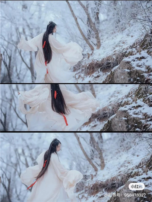 皚皚的白雪與紅色斗篷遙相呼應(yīng),一低眉一頷首,舉手投足間,恍若驚鴻仙子。