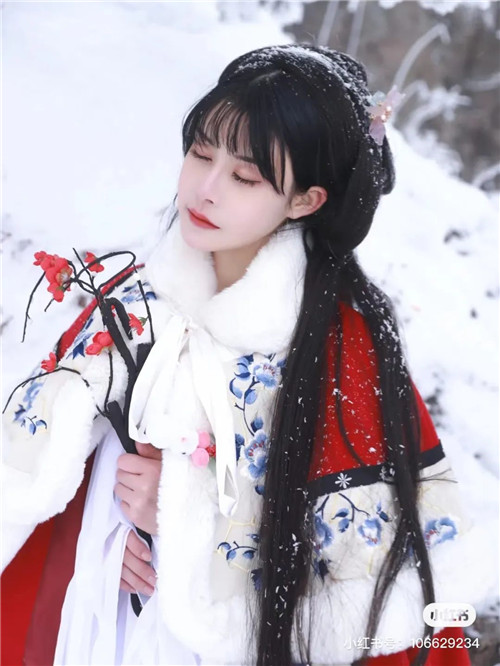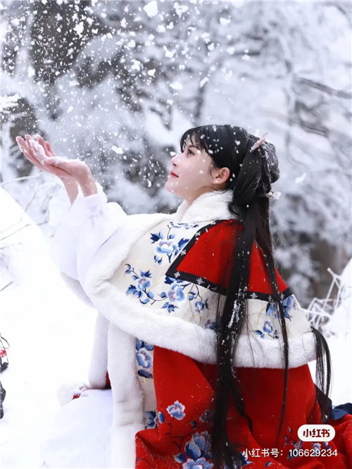 皚皚的下雪天,與漢服相遇,恰如一場(chǎng)浪漫的邂逅。