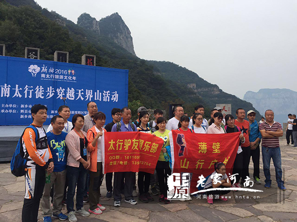 回龍·天界山景區(qū)位于河南省輝縣上八里鎮(zhèn),地處太行山腹地,距新鄉(xiāng)55公里,省會鄭州118公里,景區(qū)規(guī)劃開發(fā)面積43平方公里,分為巔峰勝境、戶外天堂——十字嶺;360°看太行——云峰畫廊;祈福問道、天下鐵頂——老爺頂;親水樂園、獼猴王國——龍吟峽;山鄉(xiāng)風韻、度假圣地——張溝五個部分;佚垝毂诠贰⒗蠣旐敗⒃品瀹嬂鹊雀黝惥包c百余處,自然景觀與人文景觀相得益彰。是祈福、影視、攝影、寫生、觀光度假、戶外休閑的絕佳去處。本次徒步壯美360°云峰畫廊體驗線。清風關(guān)廣場——1至7號觀景臺(云峰畫廊)——回龍大峽谷(小北門),全程大約10KM。這條線路最大看點在于云峰畫廊7個不同的觀景臺,7個觀景臺分別是聽禪臺、試膽臺、聞琴臺、如畫臺、戲龍臺、丹鳳臺、歸真臺,正好俯瞰太行全景,而每一個觀景臺又可看到不同角度的景色,可謂一步一景。