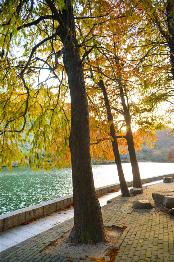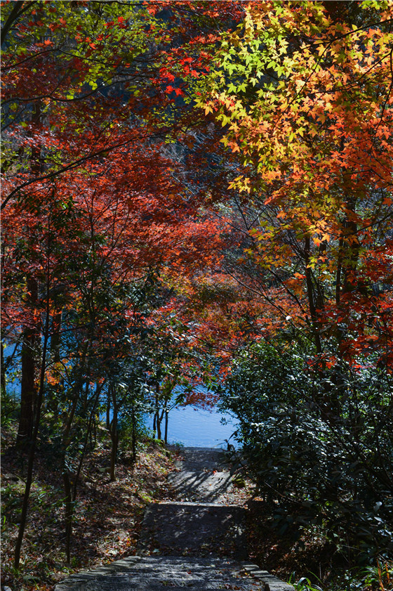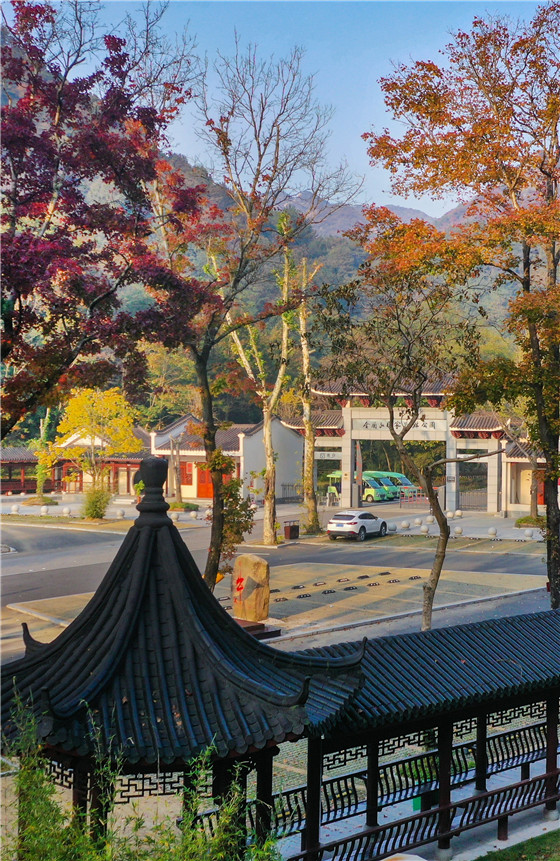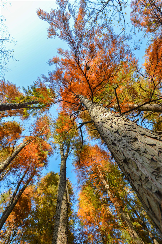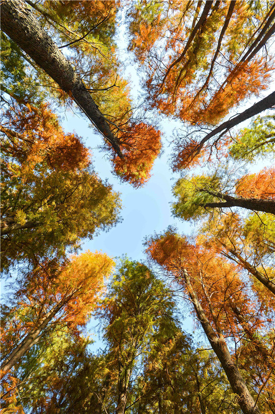 杉樹(shù)修長(zhǎng)傲立,層林盡染。 王玉新 攝
