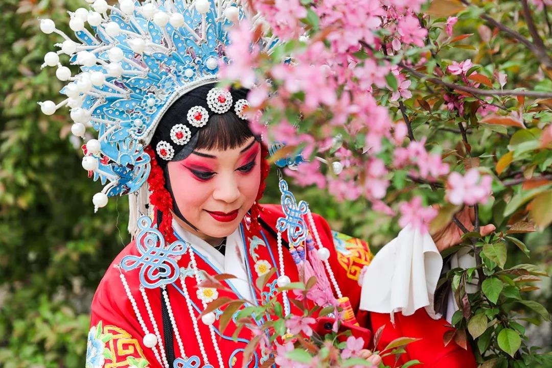 花海遇到戲曲,別樣美麗