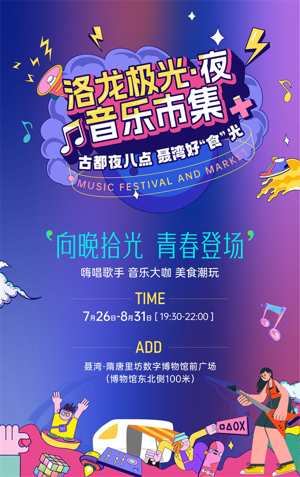 7月25日,記者從洛龍區(qū)委宣傳部獲悉,7月26日晚至8月31日,作為洛young夏日奇遇季重點(diǎn)活動(dòng)之一,洛龍極光·夜音樂市集空降聶灣隋唐里坊文化數(shù)字展示館前廣場(chǎng),“音樂+美食+好物市集+國(guó)潮玩樂”多重沉浸式體驗(yàn)一并來襲,來洛龍聶灣,暢游洛陽夏日“潮玩烏托邦”。