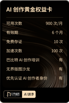 1)AI創(chuàng)作權(quán)益卡以及次數(shù)發(fā)放或者AI創(chuàng)作相關(guān)問(wèn)題請(qǐng)聯(lián)系無(wú)界AI小助手