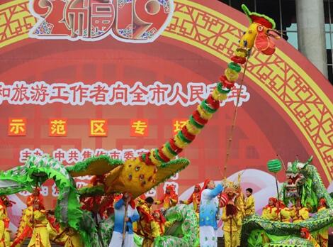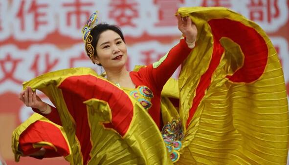 龍鳳燈舞、大辮子戲、黃河盤鼓、高抬火轎、景明虎舞、哼小車、黃河泥塤……一個(gè)個(gè)非遺項(xiàng)目在“出彩河南·歡樂懷川·春滿山陽”焦作市2019年春節(jié)優(yōu)秀文藝節(jié)目展演中展示出無窮魅力;斗笠舞《紅海紅,中國紅》、藏舞《心聲》、彝舞《山澗飛舞》、戲歌《美麗陳家溝》……一個(gè)個(gè)歌舞節(jié)目讓觀眾感嘆。2月16日、17日,來自沁陽、溫縣、示范區(qū)、武陟的演出人員冒著嚴(yán)寒,在東方紅廣場為市民奉上精彩的文化大餐。