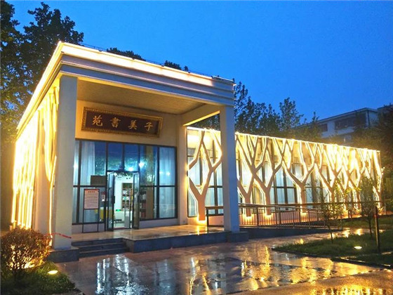 體育館城市書房建筑面積305.77平方米。建筑內(nèi)部設(shè)置大樹,外墻以樹杈的剪影形態(tài)作為裝飾,戶外增加的閱讀、休閑、交流平臺,給生活在鋼筋水泥城市的人們尋找一個森林之家,讓人身心放松,融入自然。