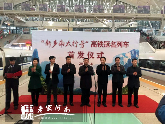2016年1月6日,“新鄉(xiāng)南太行號”高鐵冠名首發(fā)儀式在武漢火車站拉開序幕。開幕式由新鄉(xiāng)市人民政府辦公室副主任孫傳勇主持,新鄉(xiāng)市外事僑務(wù)旅游局局長崔紅致辭,新鄉(xiāng)市人民政府副市長周世杰、新鄉(xiāng)南太行旅游集團總經(jīng)理王紅昌等共同出席了高鐵冠名剪彩儀式。