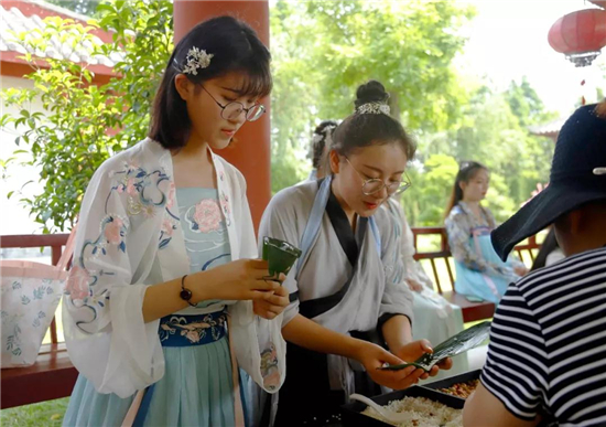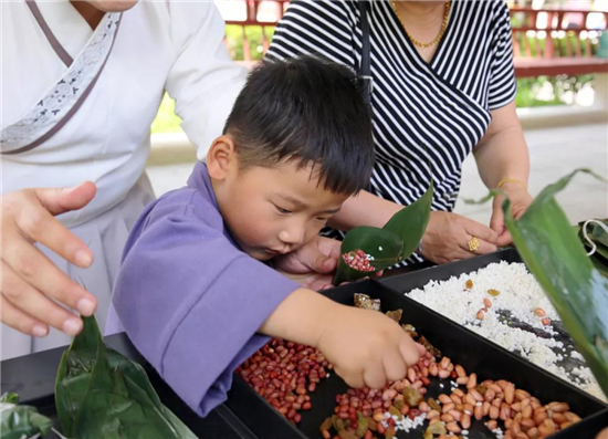 吃粽子作為端午節(jié)必不可少的內(nèi)容,不僅能夠讓大家一飽口福,更是讓源遠(yuǎn)流長(zhǎng)的中華文化通過此種載體延續(xù)。端午期間,眾多游客在芒碭山漢梁王陵景區(qū)內(nèi)免費(fèi)體驗(yàn)穿漢服、包粽子,跟隨民間包粽子高手學(xué)習(xí),并參加包“端午益智”粽比賽,現(xiàn)場(chǎng)一片熱鬧歡樂的景象。還有機(jī)會(huì)自己手工制作香囊、五彩繩,為家人和朋友帶去一份美好祝福。