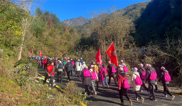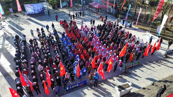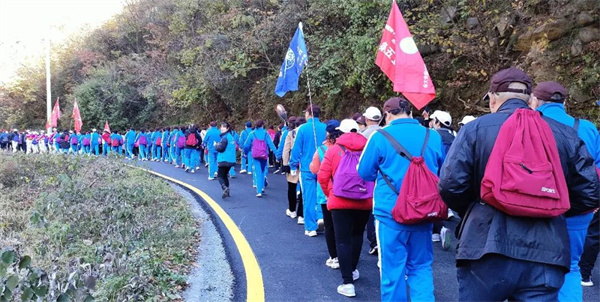 上午9時15分,隨著一聲清脆的發(fā)令槍響,選手迅速出發(fā),健身大會正式啟動,善水廣場頓時漫天旗幟揮舞,浩浩蕩蕩的登山大軍向著巍峨的伏牛山脈出發(fā)。本次登山路線為善水廣場停車場—太清谷口,全程約3公里。