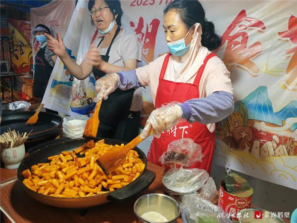 這里煙火氣十足!海南椰子、臺灣鮮榨果汁、天津狗不理包子、炒年糕、拉絲熱狗等風(fēng)味美食讓游客大快朵頤。50余種淇縣特色優(yōu)質(zhì)農(nóng)產(chǎn)品、手工藝品、旅游商品、文創(chuàng)產(chǎn)品等集體亮相。