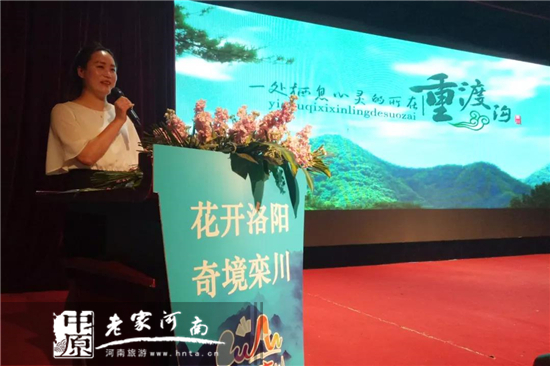 發(fā)布會(huì)現(xiàn)場(chǎng),活動(dòng)主辦方利用多種形式,全方位向參會(huì)來(lái)賓展示了欒川老君山、雞冠洞、重渡溝三大景區(qū)秀麗的自然風(fēng)光,贏得了與會(huì)來(lái)賓的陣陣掌聲,取得了豐碩的成果。發(fā)布會(huì)上,欒川縣雞冠洞、老君山、重渡溝的金牌導(dǎo)游做了“奇境欒川”旅游產(chǎn)品推介,向與會(huì)來(lái)賓展示欒川的奇山秀水、風(fēng)土人情。