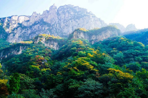 山山嶺嶺斑駁陸離,層林盡染,一片翠綠、一片金黃、一片嫣紅、一片醬紫,宛若一幅匠心獨運的彩色畫卷!