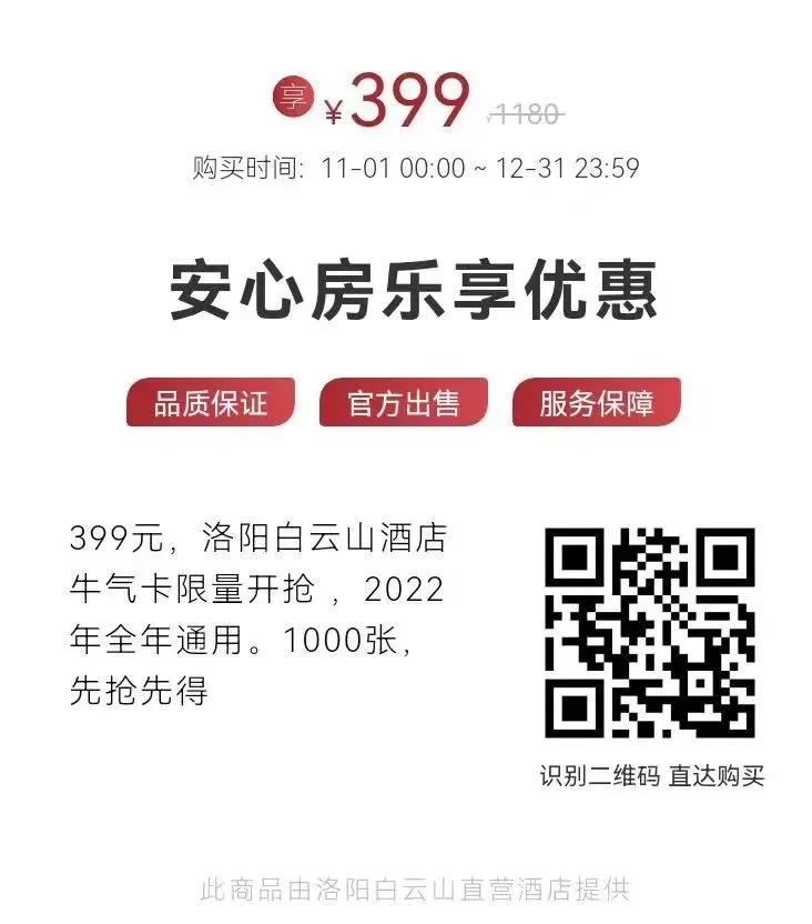 各位小伙伴們,這個11.11你們剁手了嗎?不僅想買買買,還想浪浪浪,洛陽白云山限量爆款年卡、牛氣卡,不用剁手也買的起,出游的必備省錢利器 ,全年365天無限次暢游,只去一次就回本,錯過再等一年,限時搶購!手慢無~承包您一整年的旅游~