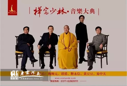 《禪宗少林·音樂大典》是由音樂原創(chuàng)譚盾、“中國實景第一人”梅帥元、少林寺方丈釋永信、廈門大學教授易中天及著名舞蹈家黃豆豆五位大師聯(lián)袂打造的一臺大型山地實景演出,共分《水樂》、《木樂》、《風樂》、《光樂》、《石樂》五個樂章。